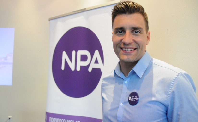 代表溫哥華無黨派協會(NPA)參加10月14日溫市議員補選的貝廉立(Hector Bremner),周二提出可以「果斷解決住房問題」的計劃。