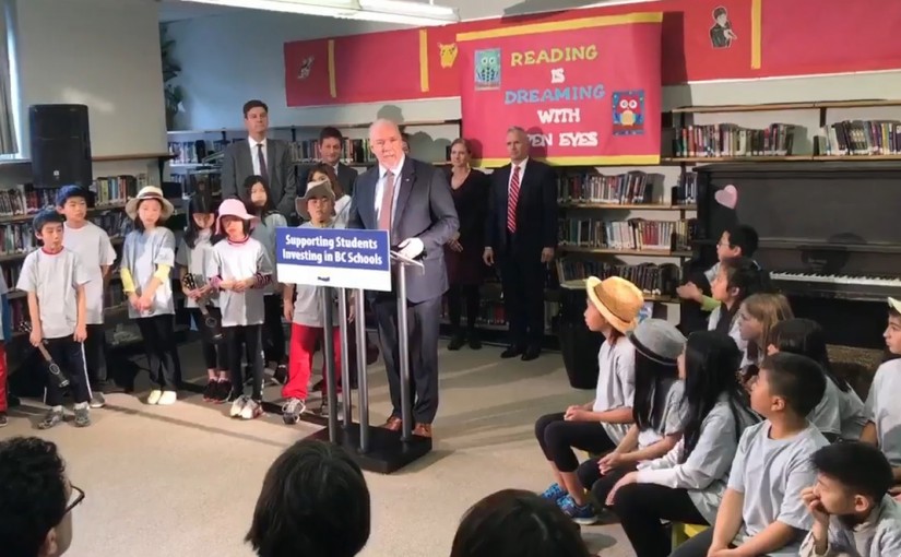 卑詩省長賀謹(John Horgan)周三宣布,省府將撥款重建大溫4間小學,加快省內公立學校的校舍防震工程,提供學生安全就讀環境。