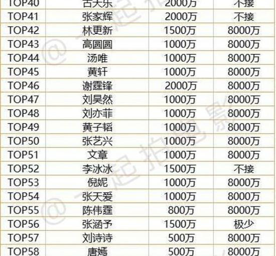 據悉,該榜單根據大數據模型結合市場行情來統計,除了電影還兼顧電視劇酬勞,同價位片酬明星的排次按照近期票房和人氣微調,但也有業內人士對這樣的統計方式表示質疑,因為統計數據太過籠統,明星的片酬構成十分複雜,很難通過簡單的推算,得出準確的數據。