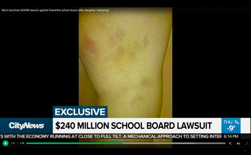 怡陶碧谷一女子近日向Kawartha Pine Ridge教育局提起高達2.4億加元的訴訟,稱她11歲的女兒被工作人員施加限制並虐打,回到家後她身上有淤青和挫傷,並造成精神痛苦。