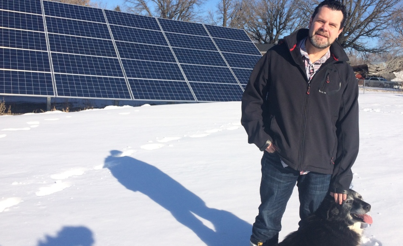 Jarrod Chamberlin住在溫尼辟南邊72公里處的De Salaberry市。去年夏天,他為自己的住宅安裝了35塊太陽能板。他說,這些太陽能板應該能提供他家中所需電力的接近一半。