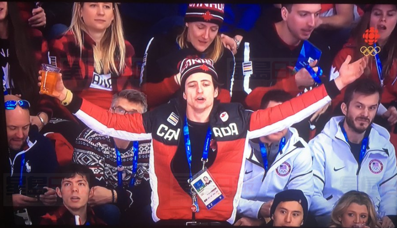 根據MSN消息,昨晚平昌冬奧會女子冰球項目進行了決賽,加拿大隊對戰老牌勁旅美國隊。已經在本屆冬奧會上獲得了兩枚金牌的冰舞組合之一莫伊爾(Scott Moir)也前來觀戰,還向夥伴發放啤酒。在進行到一個有爭議的判罰時,莫伊爾還從座位上站起來,似乎在大聲說“Are you kidding me?”,看起來對裁判的判罰感到不滿。當進行到精彩之處時,他也從座位上站起來喝彩。