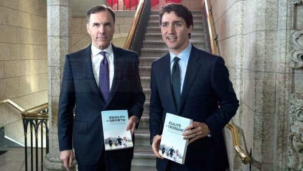 (杜魯多(左)與莫奈手持預算案-CTV電視台)
