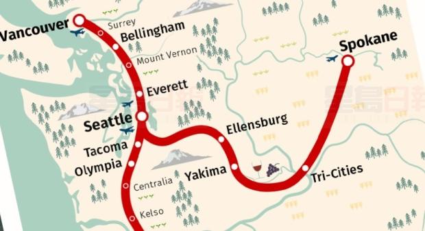 如高鐵落成,溫哥華至西雅圖的行車時間可由3小時縮短至1小時
