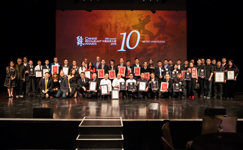 第十屆中國食肆大獎4月17日星期二在囪詩省列治文市河石劇院舉行頒獎禮,表揚2018年大溫優秀食肆和「首本名 菜」,今年頒獎禮的主題是「十年,有你有我」。大會還籌得9千元善款,用於為溫哥華社區學(Vancouver