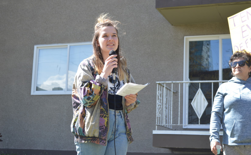 本拿比抗議者發起「絕不會離開」活動,反對市府拆除廉租單位 幾十位租客和房屋抗議者周六在鐵道鎮(Metrotown)架空列車車站旁舉行「絕不會離開」(We won’t go)抗議活動,反對本拿比市府在過去幾年內,拆除廉租單位,建造高層柏文。 V06