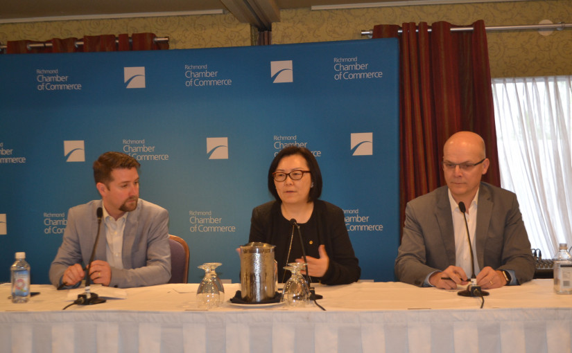 MotionPay科技公司4月26日星期四與列治文商會宣布建立合作夥伴關係,通過建立微信支付和支付寶平台為列治文商會會員提供服務管道。列治文市府亦派出工作人員了解這一新型支付方式,未來或有機會通過這一平台徵收地稅及一些公共設施收費。