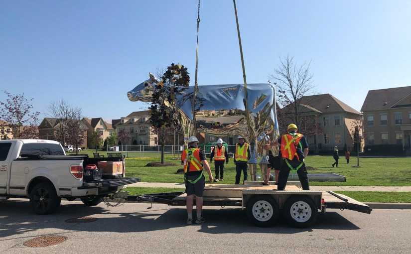 此前在萬錦市大教堂區(Cathedraltown)豎立的一座大型鍍鉻牛雕塑曾引發居民強烈爭議。經過多方長時間的爭執,這個牛雕塑今天終於被移走。雕塑移走後,將歸還給捐贈者。