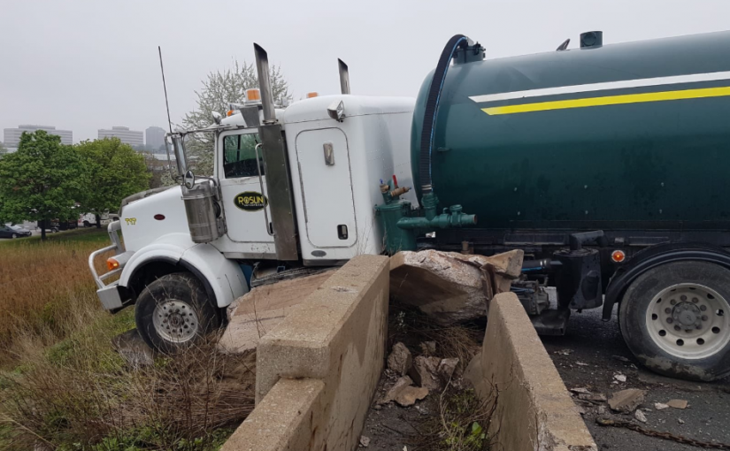 車禍發生在401高速東行方向靠近Mavis Rd.的區域,目前工作人員正在清理現場,右側兩車道預計將會關閉到下午5點左右。
