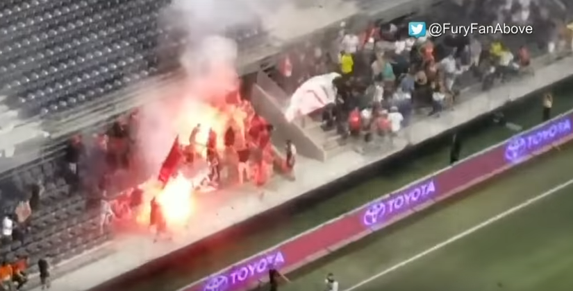 下半場時,多倫多足球隊的支持者在看台上點燃閃光彈和煙霧彈,導致火災。火勢向足球場地蔓延,但隨即被保安人員撲滅。