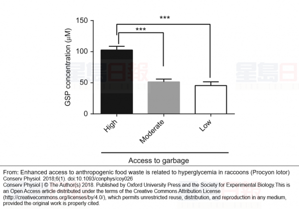 更令人擔憂的是,喜歡吃人類食物殘餘的城市組浣熊血糖濃度要高出許多,約為其它組浣熊的兩倍。