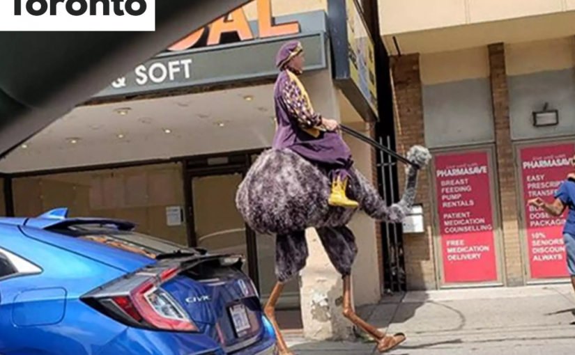 據BlogTO報道,多倫多熱門娛樂賬號6ixBuzzTV星期六在Facebook上發佈了一則視頻,視頻中一名男子在多倫多Weston Road人行道上騎著一隻大鴕鳥遊街,引得眾人側目。