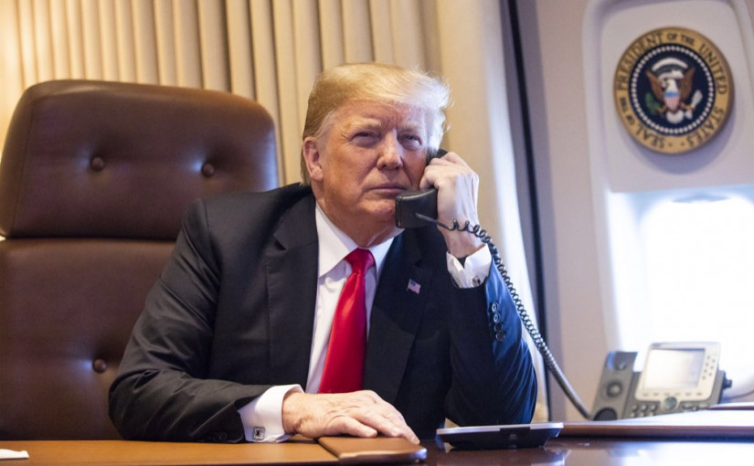 特朗普今天在總統辦公室發佈公告,墨西哥總統Enrique Pena Nieto通過對講電話參與談話。