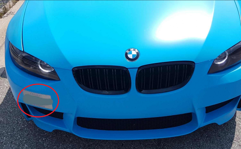 警方發佈推文,星期天在Holland街攔下一名Bradford居民,該居民駕駛的寶馬汽車前保險杠上,貼著一張看似安省車牌的貼紙。