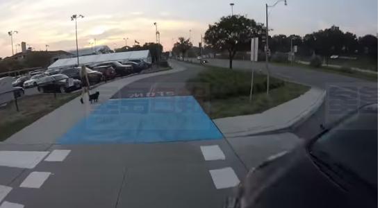 然後,這輛車轉向湖濱大道,向西行駛。大約一分鐘後,似乎是同一輛車,等待著駛入俱樂部的車道。當騎車人在汽車前經過時,汽車突然向前沖並撞到他。騎車人與司機對質。然後聽到司機說“不”,並要給騎車人錢,稍後駛離現場。