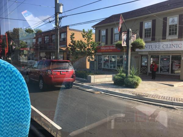 事發在Yonge街夾John St附近的Thornhill Denture牙醫診所門口。一輛紅色路虎HSE越野車在右車道向北行駛,變線時撞到了左車道上的8208號VIVA Pink巴士的前門。