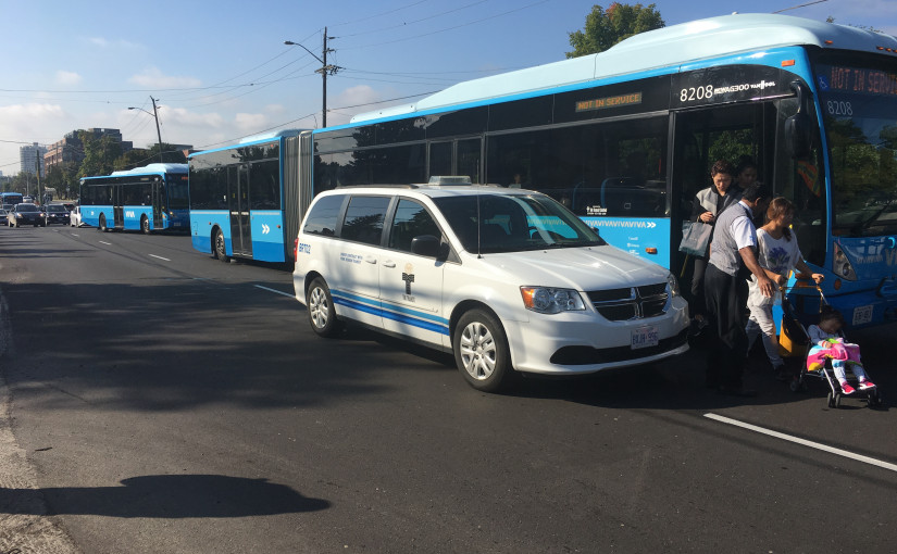 將近9:56 am,約克公交局特別警員趕到現場,將乘客遷往5120號VIVA Pink巴士。