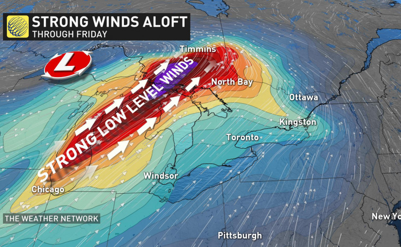 據預測,風速70~80 km/h的強勁西南風會在今天下午和傍晚形成,雷暴時的風速會更高。強風是由即將在下午和傍晚過境的冷鋒帶來的。