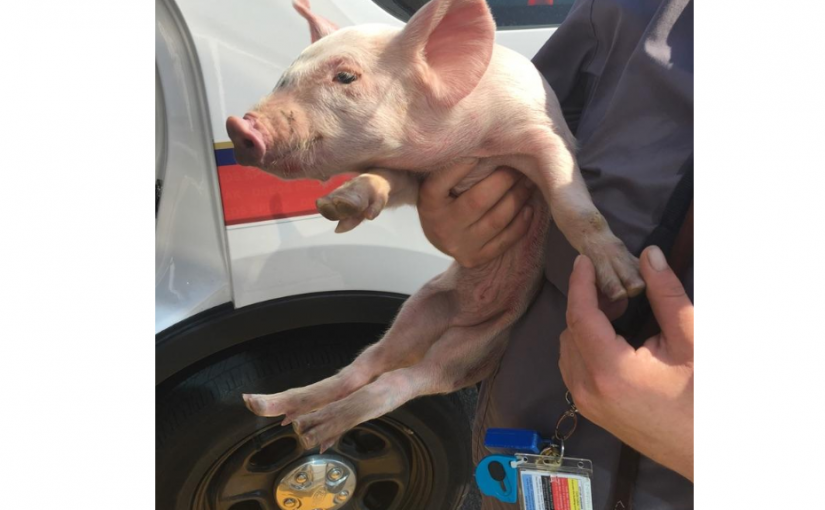 本網報道,9月21日星期五早晨,有人發現一隻小豬在Hwy 400近Hwy 407的南行車道上行走,警方接到報案後趕到現場營救。