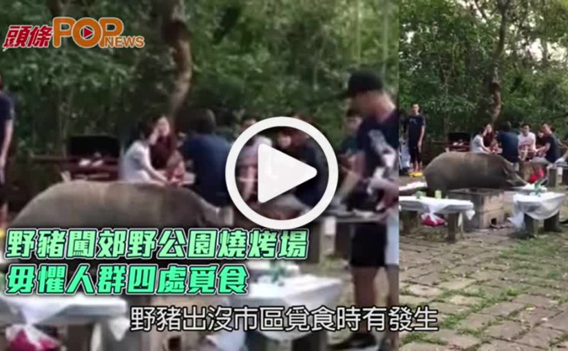 野豬闖郊野公園燒烤場 毋懼人群四處覓食