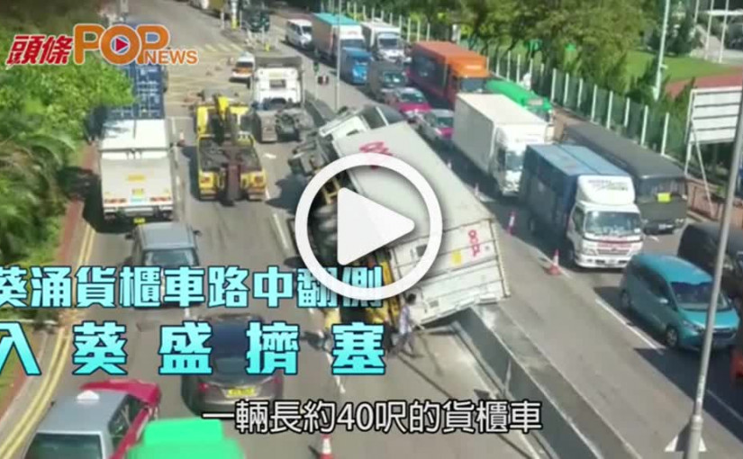 葵涌貨櫃車路中翻側 入葵盛擠塞