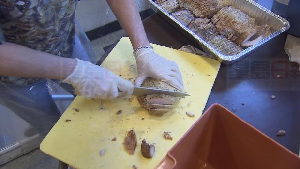義工正準備的食物包括800磅薯蓉、700磅菜、700磅餡料、600個南瓜批、260公升果汁、400公升雪糕,以及2,200磅火雞。