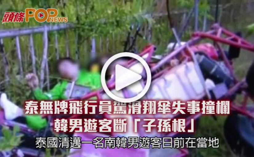 泰無牌飛行員駕滑翔傘失事撞欄 韓男遊客斷「子孫根」