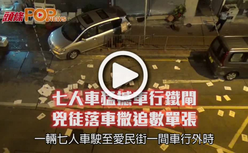 七人車猛撼車行鐵閘 兇徒落車撒追數單張