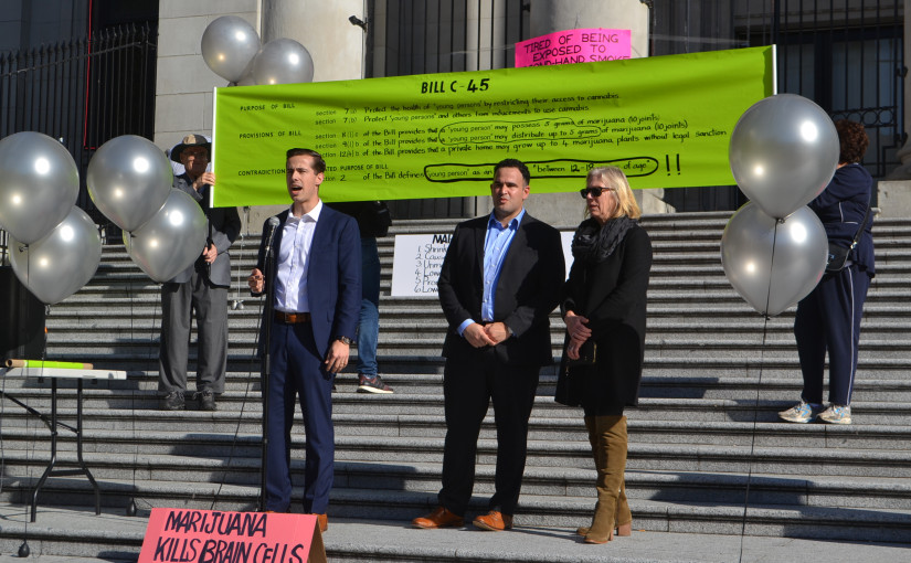 反對大麻合法化團體溫市中心抗議 反對大麻合法化團體「精明處理大麻」(Smart Approaches to Marijuana)周三在溫市中心美術館廣場舉行大麻合法化抗議活動,警告人們大麻合法化的弊端及推出新的監控組織。一些大麻合法化支持者則在現場慶祝、吸食及銷售大麻,還有人不停大聲打斷抗議者講話,令場面一度有些混亂。 v06