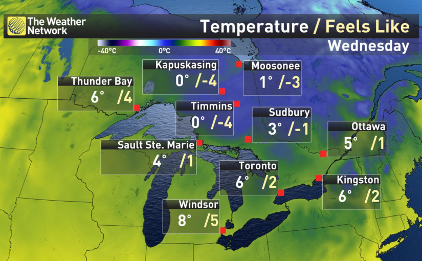 安省本週天氣預覽:多倫多低溫陣雨,其它地區降雪