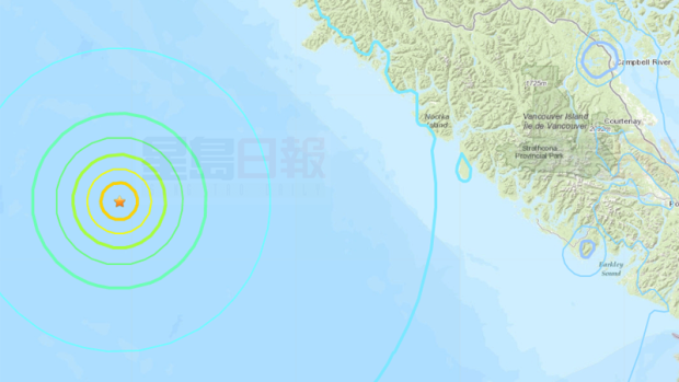 溫哥華島對開海域由10月21日星期日晚至星期一早上共發生7次地震,幸無嚴重破壞,最新一次是在周一早上9時27分發生,強度是5.2級。