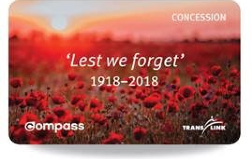 大溫地區運輸聯網11月2日星期五公布,為紀念第一次世界大戰結束100年,發行特別版康百世卡(Comapss Card),悼念當年為國捐軀的加國軍人。