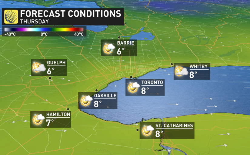 據Weather Network報道,星期一經過五大湖北部地區的天氣系統,會給安省中部和南部帶來約5~10毫米的降雨,部分地區氣溫上升到十多度。