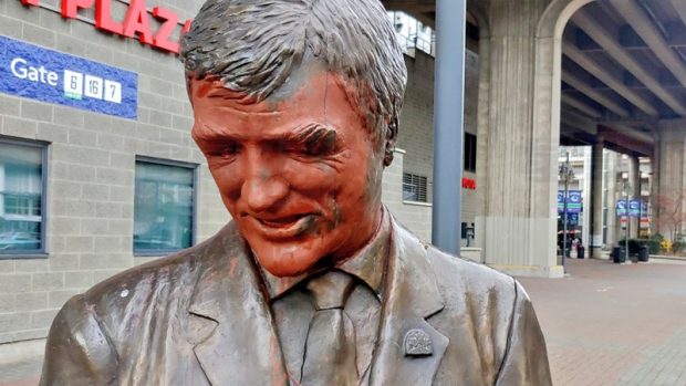 據英語電台News 1130 11月12日星期一報道,放在溫市中心羅渣士體育館外、溫哥華加人冰球隊殿堂人物Pat Quinn的銅像遭人破壞,臉部與胸部部分地方被淋上橙色或啡色的油漆。