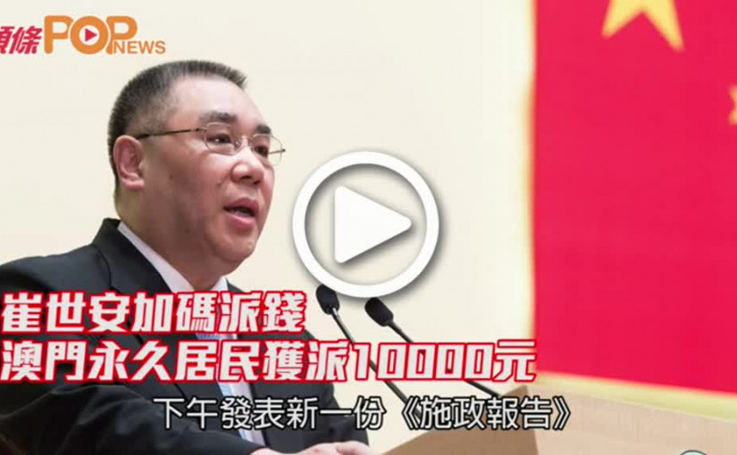 崔世安加碼派錢 澳門永久居民獲派10000元