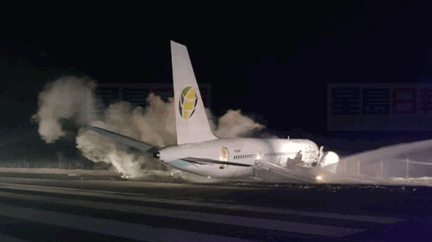 該架波音757飛機著陸時在跑道上滑過了頭,開進了草叢裡。飛機停穩時,離12米高的山崖邊緣僅相距3米。
