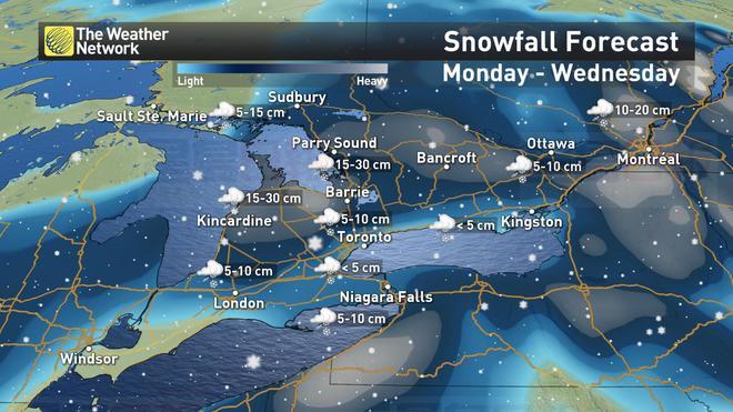 星期二,安省中部地區以及Sudbury附近的鎳礦帶會有10~20釐米的降雪。