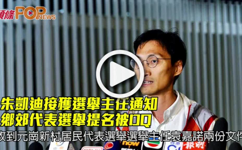 朱凱迪接獲選舉主任通知 鄉郊代表選舉提名被DQ