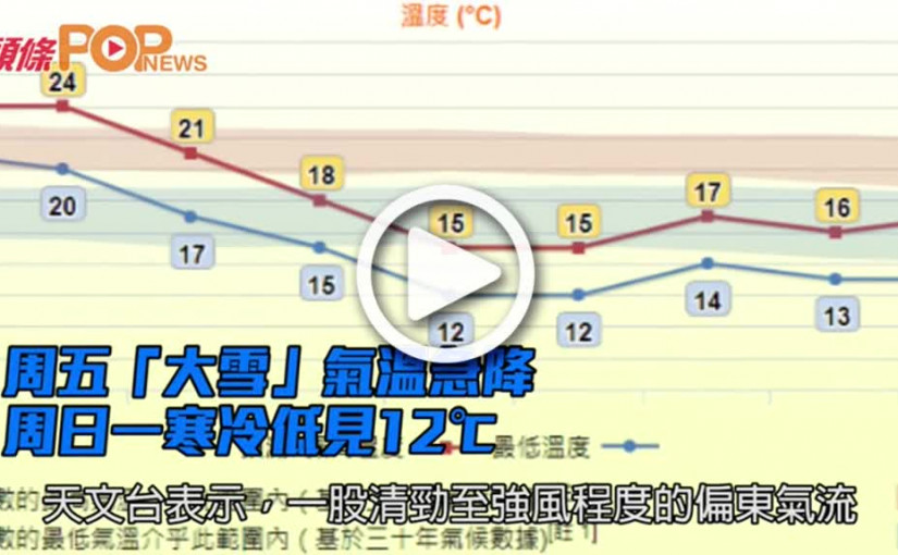 周五「大雪」氣溫急降 周日一寒冷低見12℃