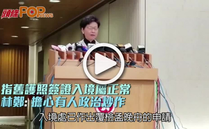 指舊護照簽證入境屬正常 林鄭:擔心有人政治炒作