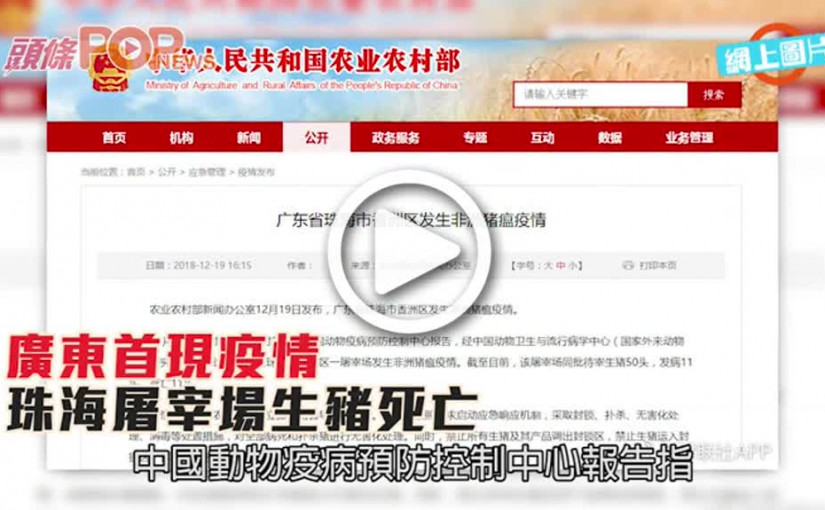 廣東首現非洲豬瘟 珠海屠宰場生豬死亡
