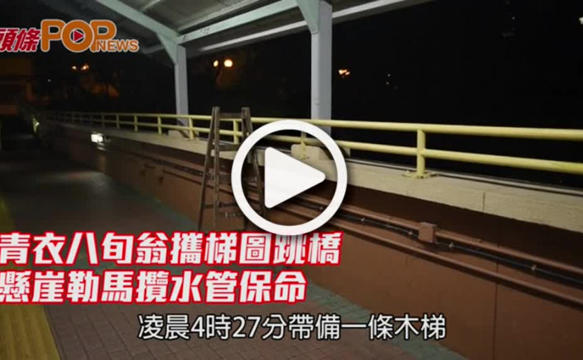 青衣八旬翁攜梯圖跳橋 懸崖勒馬攬水管保命