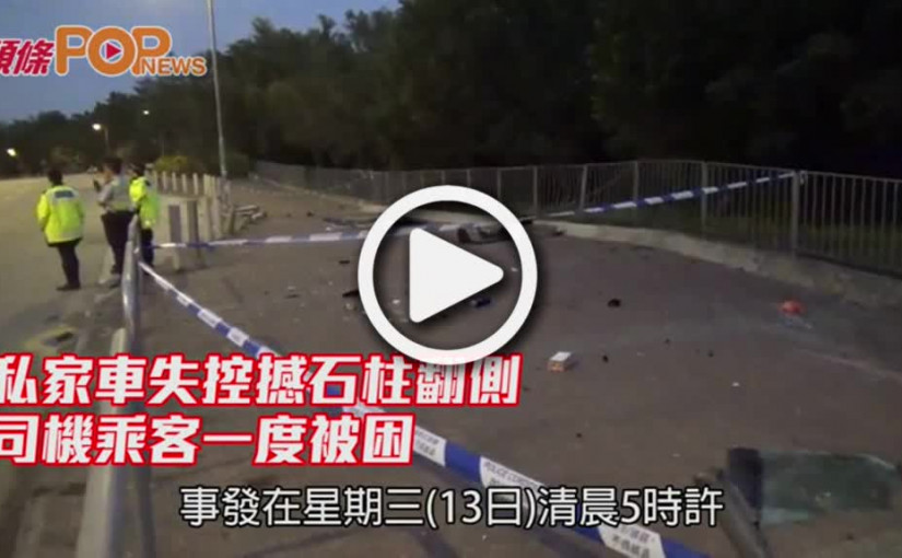 私家車失控撼石柱翻側 司機乘客一度被困