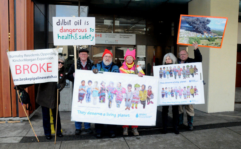 數名反對橫山輸油管(Trans Mountain)擴建計劃人士,周三在位於溫市中心的國家能源局(NEB)辦公室門前抗議,呼籲停止該計劃以避免發生大規模災難的潛在危險,為子孫後代留下一個可安全居住的環境。
