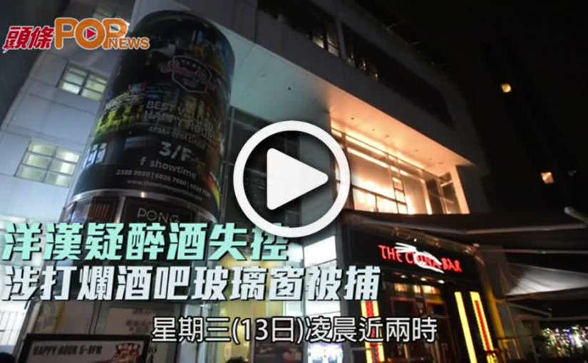 洋漢疑醉酒失控 涉打爛酒吧玻璃窗被捕