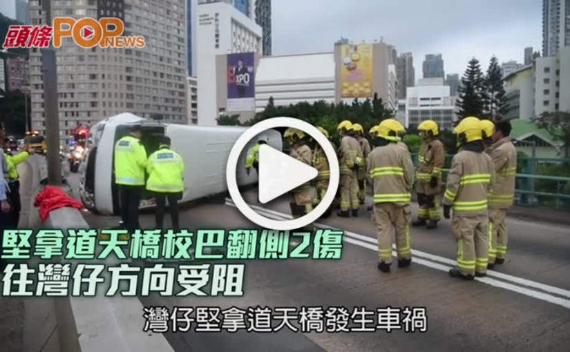 堅拿道天橋校巴翻側2傷 往灣仔方向受阻