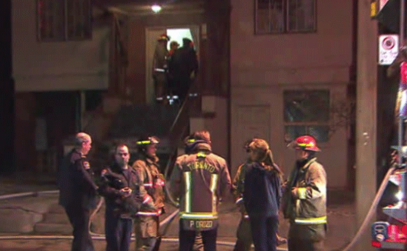 多倫多消防局在大約4時30分接報有火警,座落近Tyndall大道的King街一幢3層高住宅大廈起火,消防員趕到現場後,勒令屋內居民立即離開大廈。
