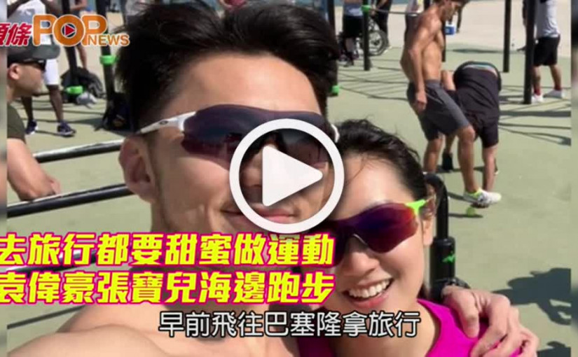 去旅行都要甜蜜做運動 袁偉豪張寶兒海邊跑步