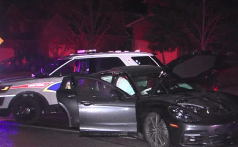 警方今晨在萬錦市Buttonville機場附近追捕一輛被偷走的保時捷Panamera豪華房車,最終該輛偷車與警車相撞,兩名偷車賊被捕。