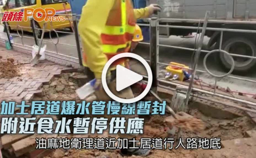 加士居道爆水管慢線暫封 附近食水暫停供應